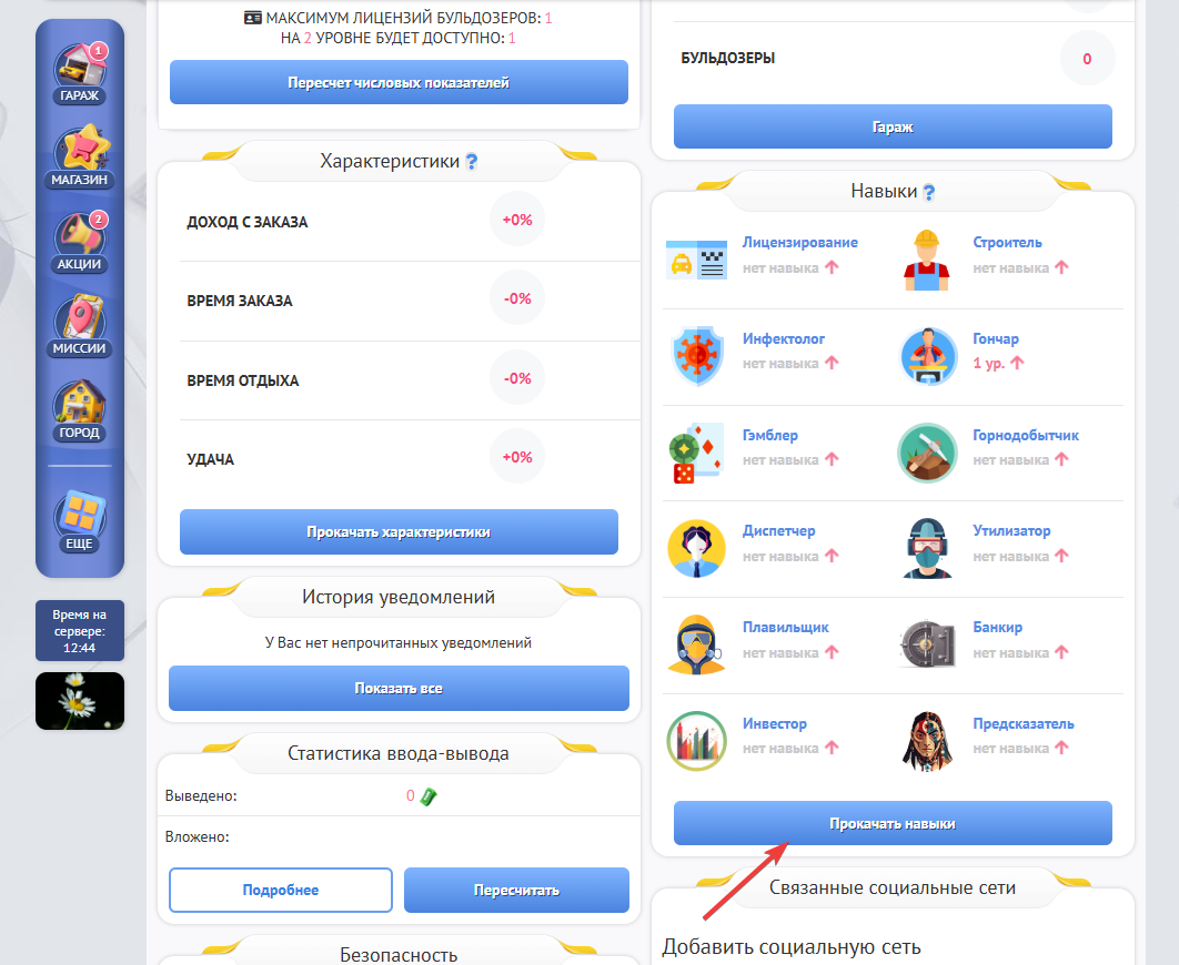 Нажать “Прокачать навыки”