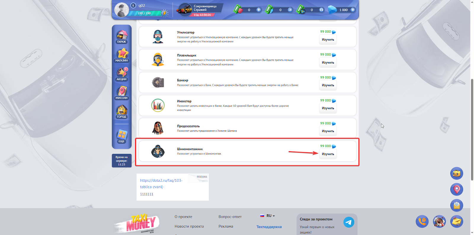 1. Изучить навык “Шиномонтажник”