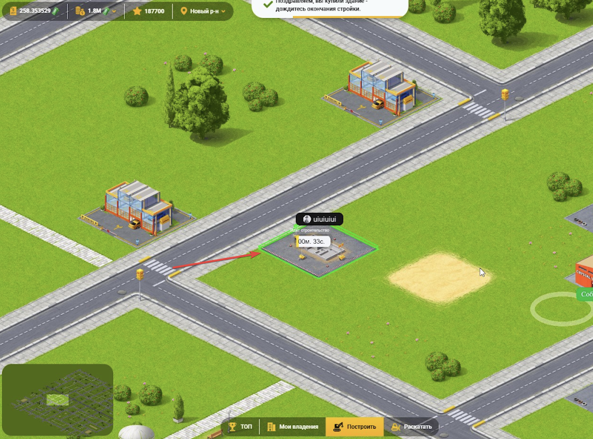 Далее нужно будет Выбрать свободный участок на интерактивной карте Полиса и возвести “Шиномонтажку”