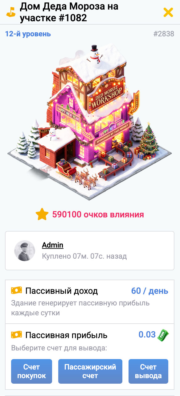 Инвестируй в недвижимость Taxi-Polis, и получай дополнительный пассивный доход за счёт влияния в городе!