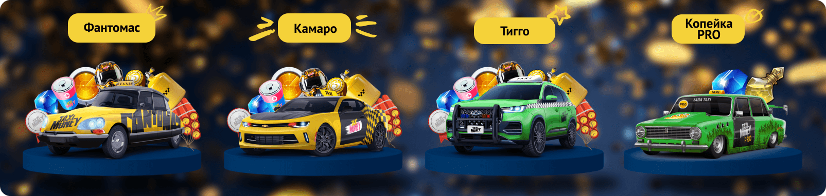 2. Эти топовые такси будут доступны в качестве призов в конкурсе депозитов «Май 2025». С 1 по 8 мая — Тигго, с 9 по 15 мая — Камаро, а с 16 по 22 мая забери себе Фантомас в качестве приза!
